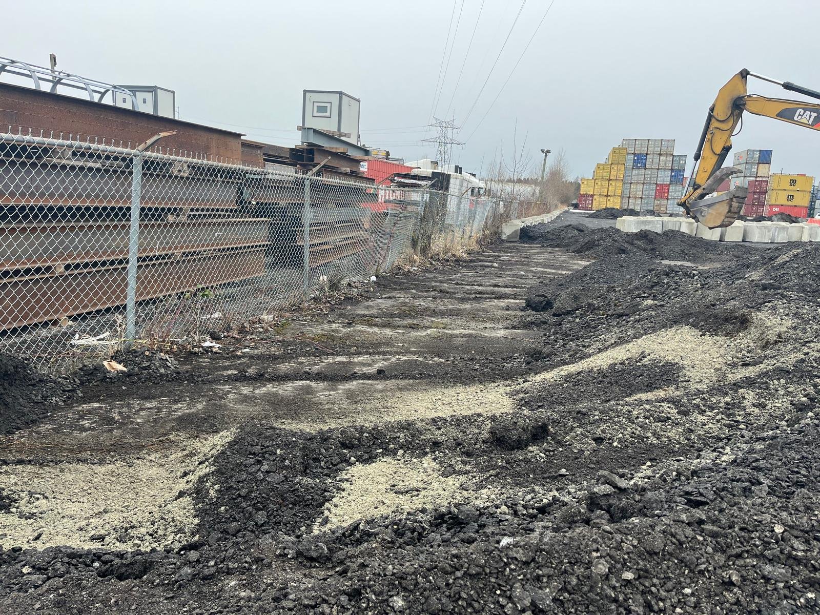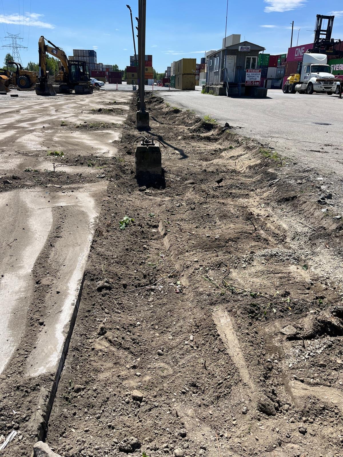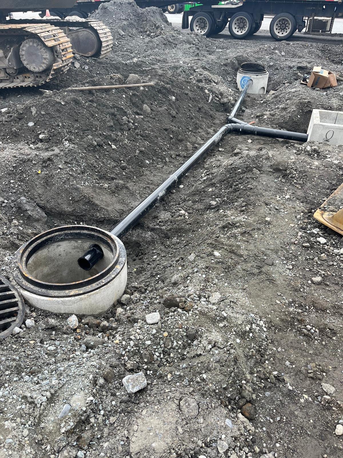 To manage the rainwater drainage at an industrial yard, we installed new storm lines and re-levelled the yard, thus improving the drainage system throughout.